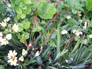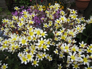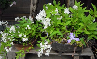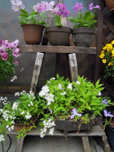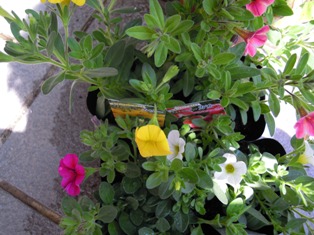 今年買ったものは、まわりのお花に埋もれてみえなくなってしまいました。(右下)
