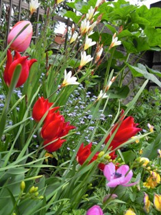 今が一番賑やかな我が家の庭、道行く人も「綺麗ね~」と声をかけてくださいます。