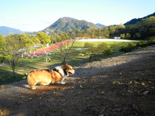 さすけと山の麓を歩くのもわかるでしょ。いつも向こ~うのほうを歩いています。