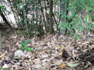 道路下では、タケノコも頭を出していました。運よく掘り起こされる前に写真に撮れました。