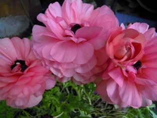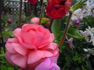 庭では、初めて球根で冬越しできたラナンキュラスがアネモネに混じって咲きました。(左下)