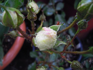 今年お迎えしたミニバラ、ミミエデンとファザーズディは蕾が大分大きくなったものを購入しましたので、我が家で一番最初に咲いてくれると思いますが、なかなか膨らんできません。