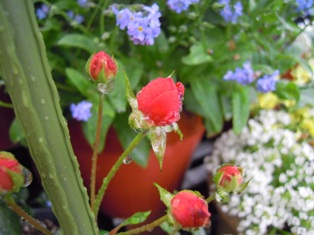 近所のバラがたくさん咲いているのに、なかなか咲かない我が家ですが、ミニバラたちは少しずつ咲いてきました。