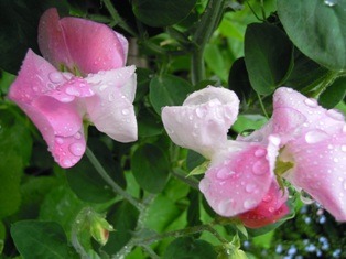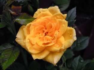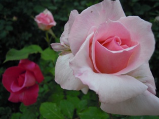 夕方 雨が降り始めました。ピエールは下を向いているけど、他のバラは大丈夫?