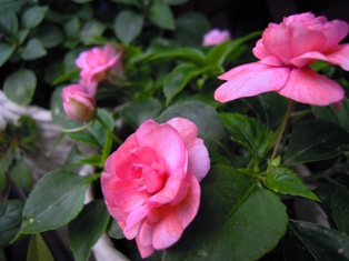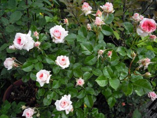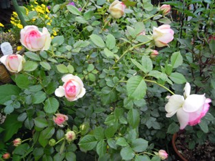 元気な葉に大きめなお花のものやら、ちょっぴりウドンコ病にかかってしまったものやら、いろいろです。