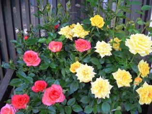 一番よく咲いているのが、ビションサラマンダーシリーズ(オレンジ)とキリンロザリーシリーズ(黄)
