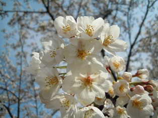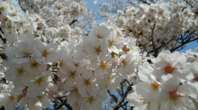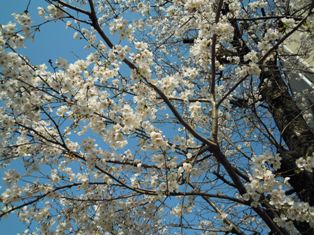県立美術館側の開花が早いです。写真を撮ろうとしても、コンデジを上に向けては、上手く撮れませんでした。開花は上の方、今日は用があって夫も一緒、私を持ち上げてもらって写真を撮ろうとしたら、重すぎて持ち上がらないそうです。(笑) 人に見られたら笑われてしまいますね。