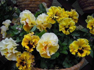 お花もいっぱいになりました。この中のパンジーもやっと花数が増えてきました。