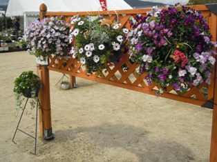 何度も同じものですみません。左2枚のラティスは内側に、右の2つは道路側に掛けています。