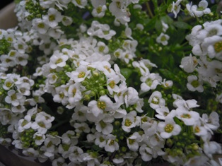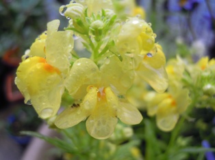 ブルーデージー、姫キンギョソウ(リナリア)黄と白、アリッサムの白