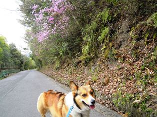 山の麓の散歩道では、ミツバツツジが咲き始めました。