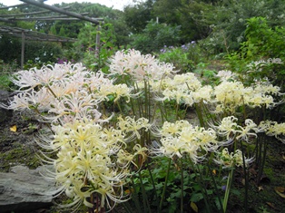 暑い夏の間、葉っぱを落としていた日枝、短く剪定してしまったので、お花は少なめ…