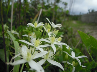 鉢植えの秋冬咲きのクレマチス 日枝が咲き始めています。