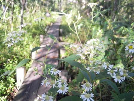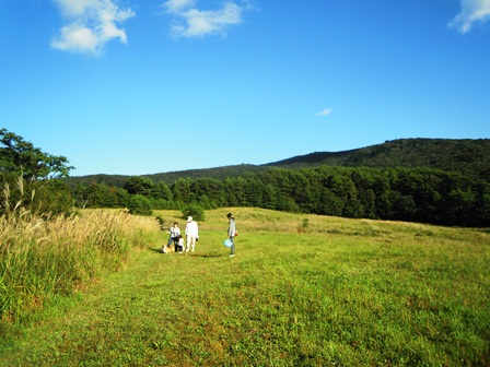 山に来た目的は、さすけと歩くこと 白いお花もいっぱい咲いています。
