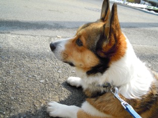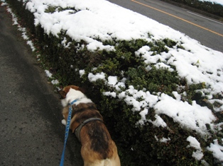 さすけは、朝の散歩の後は道路にベタ~となって当分帰りません。道路の雪も溶けました。