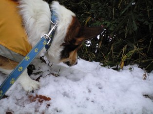 昼前に雪が止み、青空も見えてきたので、さすけと歩いてきました。