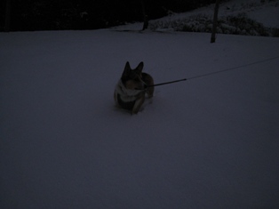 夫と私と一匹の真夜中の散歩、外は雪明り、街灯だけで懐中電灯がいらないほどでした。