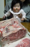 二女が注文してくれた島根和牛が届きました。あーやと記念写真。