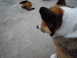 落ち着いたのか外の犬小屋に入りましたが、寒いので家の中で過ごしております。