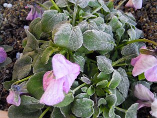 ロベリアが少しお花をつけていました。葉っぱもとても元気そう、氷点下の気温にも大丈夫だったようです。