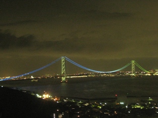 淡路サービスエリアからの明石海峡大橋です。夜になって大観覧車からの大橋、ブレていますが…