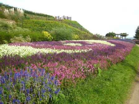 左上の写真の右上に見える淡路夢舞台の百段苑のお花は、時期が悪かったのかイマイチでした。