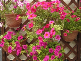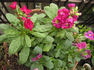 こちらは、ストックの八重と一重、同じような色のビオラ