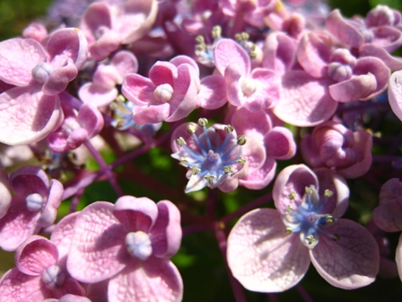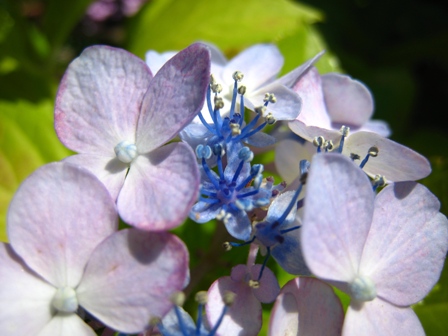 この日差しはアジサイにはちょっぴり似合いませんが、パチッと弾けた感じのお花がかわいいですね。