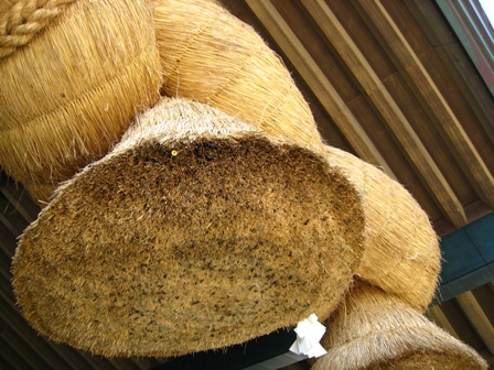 神楽殿(右下)では、ご縁があるように、たくさんの方が注連縄(しめなわ)に硬貨を投げていらっしゃいました。(拝殿の注連縄はできません)