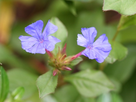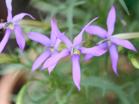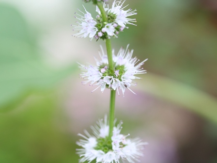 ちょっと涼しそうに咲くのは、ルリマツリモドキ、イソトマ、スペアミント