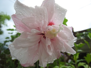 昨年はアリ被害にあったムクゲは、鉢上げし、一つお花がさきました。今年は楽しめそうです。