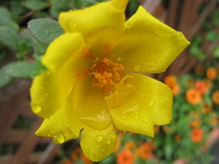 ミニバラ ロザリーシリーズはオレンジのお花ですが、枝の1本が黄色のお花が咲きます。