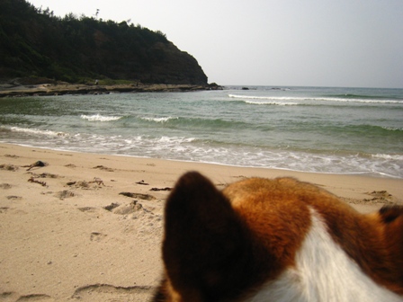 今日の砂浜は暑すぎず、散歩にはちょうどいいくらい…