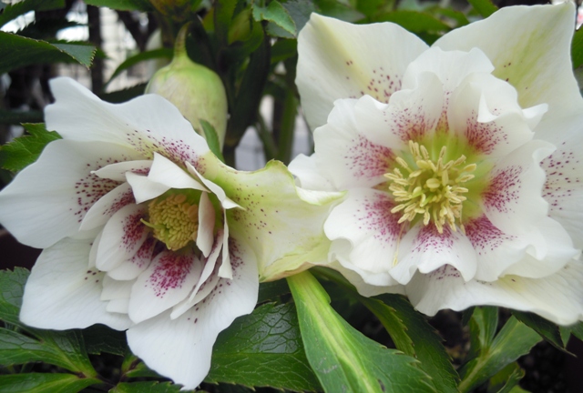 上のダブルは、ピンクのラベルだったのに、白が咲いたとよく嘆いているクリスマスローズ