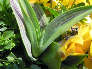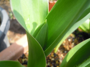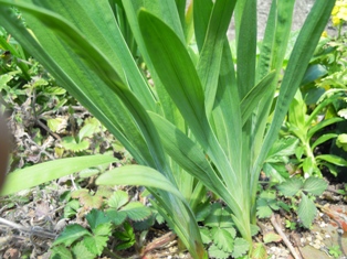 葉っぱは伸び放題、隣には何の球根を植えたのか、押され気味です。