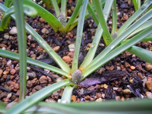 外側が寒さにやられた ↓ ハオルチア属ウンビラテイコラには蕾、ブルージー ↓ にも蕾です。