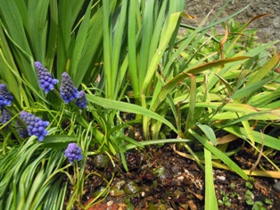 遅く植えた(12月17日)ムスカリ 植えっぱなしのムスカリ ↓ は、ツクシのように出てきました。