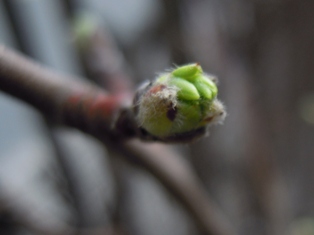 まだまだですが、クラブアップル レモイネの芽、昨年お迎えしたハナミズキの蕾も動き出しました
