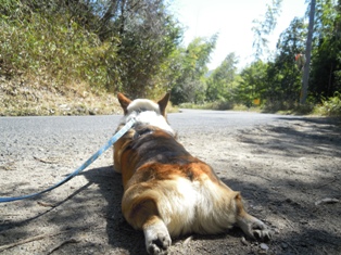さすけは、いつもの事ながら、道路で休憩中、家には帰りたくありません。