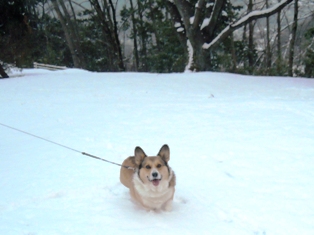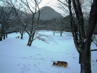 一昨日の散歩は、雪が残る運動公園 今日は、コタツに入ってる私の膝の上 ↑