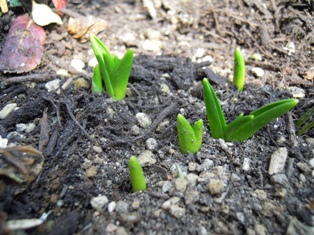 寒いので早く芽を出さないで~と祈るような気持ちで毎日眺めていた庭も、こんなに暖かくなると芽が出ているのがうれしくなってきます。
