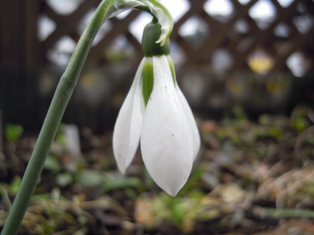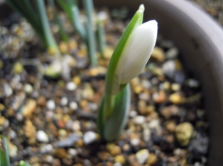 先に咲いた1本のスノードロップ ↓ まだ咲いています。