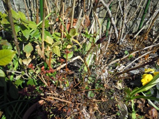 昨年夏ごろ買ってきたものでしょうか、そんなことも忘れてる、ビニールポットのままほったらかしだったのに、蕾をつけてる。この冬の寒さの中、雪をかぶったり、霜にやれれたり、厳しい寒さを耐えてきたようです。改めてこのお花の力強さを感じました。この季節にまさかお花とは…
