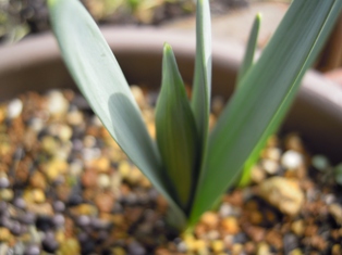 原種チューリップのレディージェーン ↓ 葉が小さいので、細長いチューリップが咲きそうですね。
