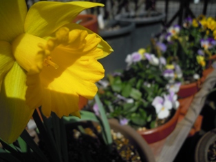 一つだけスイセンが咲きました。ビオラの鉢にはチューリップの芽が大分大きくなってきました。