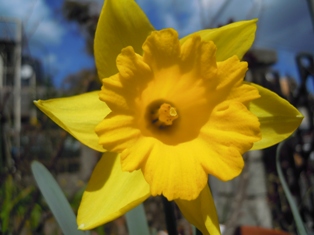 植えっぱなしOKにつられて、芽だし球根で先日買ってきたスイセン バンタム、黄色のお花です。