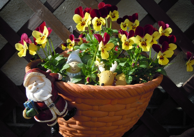 今日のお花は、ガーデンシクラメンにしてみました。しつこくサンタさんとトナカイも一緒です。