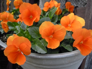 パンジーの中でも大きめなお花、色も濃いオレンジ色です。大きなパンジーは目立ちます。