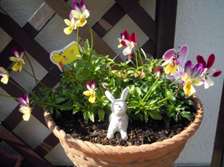 さて、今年はウサギ年、我が家にこの冬お迎えしたバニータイプのビオラを並べてみましょう。