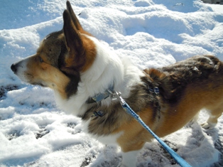 雨も雪もお散歩2回、メタボで大型のさすけにはレインコートも合う物がありません。